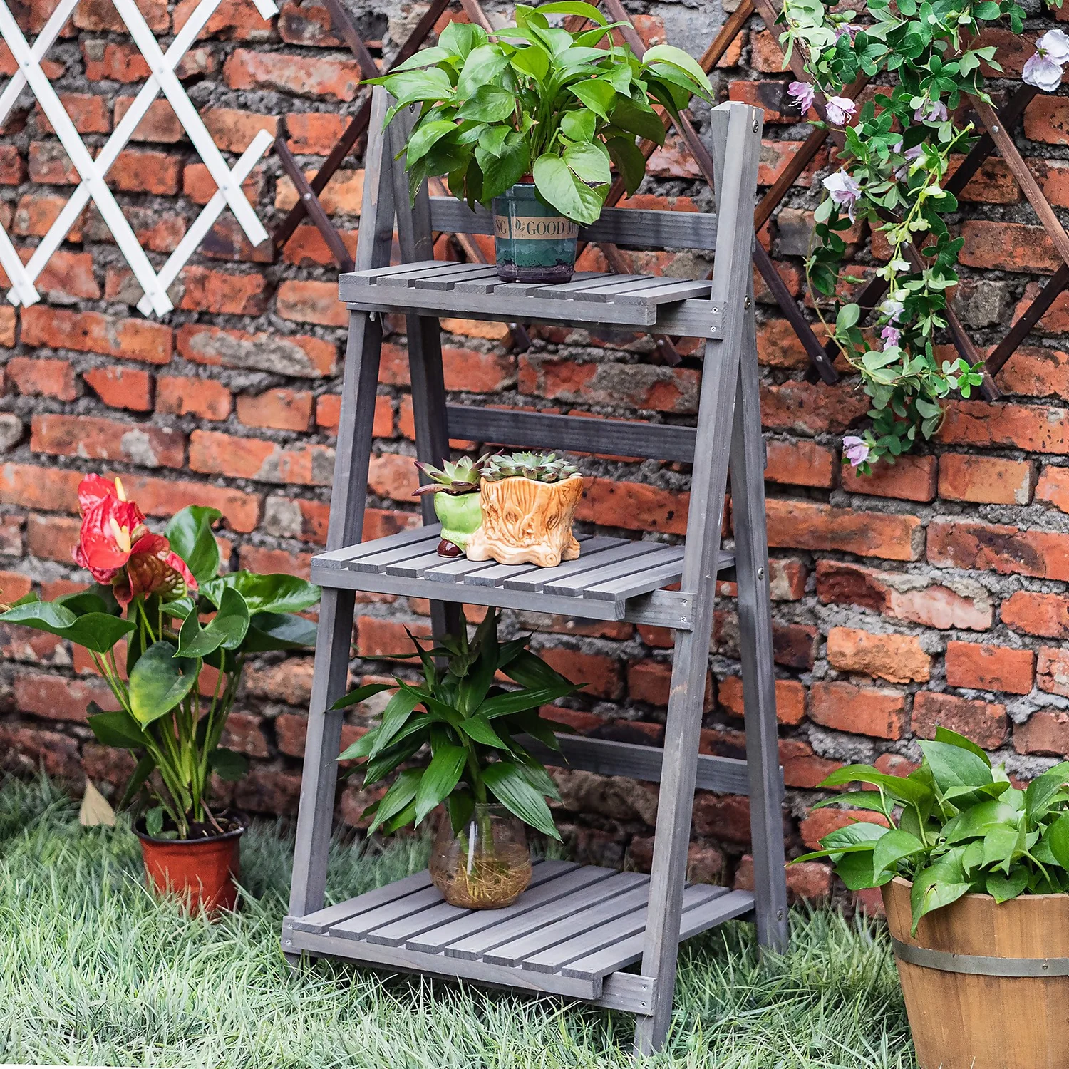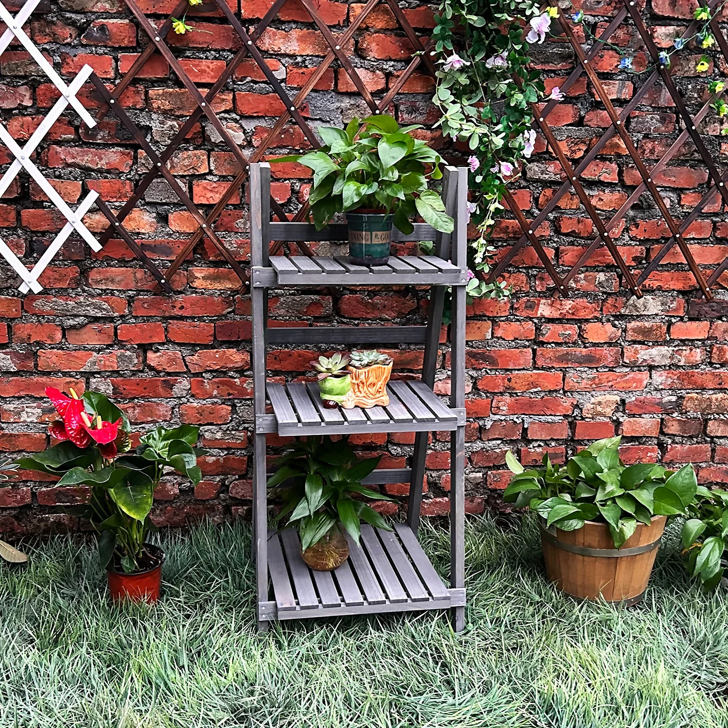 3 Tier Wooden Plant Stand – Grey