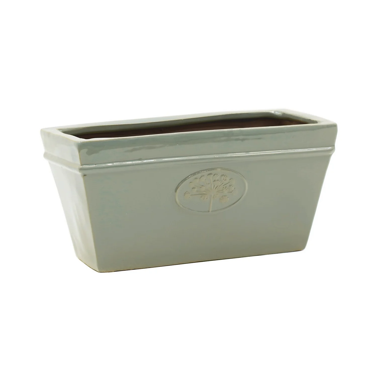 A classic glazed ceramic trough featuring an embossed motif of a cowslip in Country Living colours.