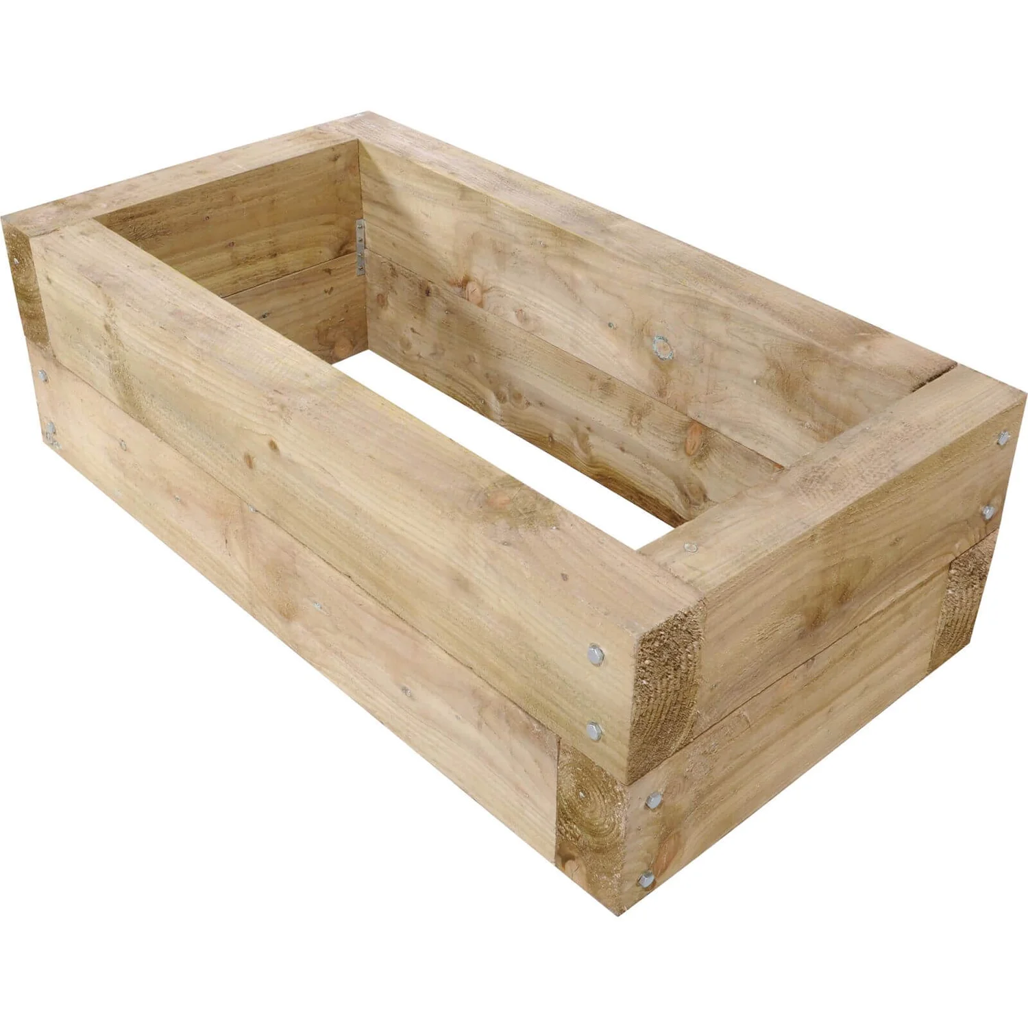 Contemporary sleeper raised bed, featuring landscaping sleepers secured with coach bolts, for a solid construction with a rustic appearance.